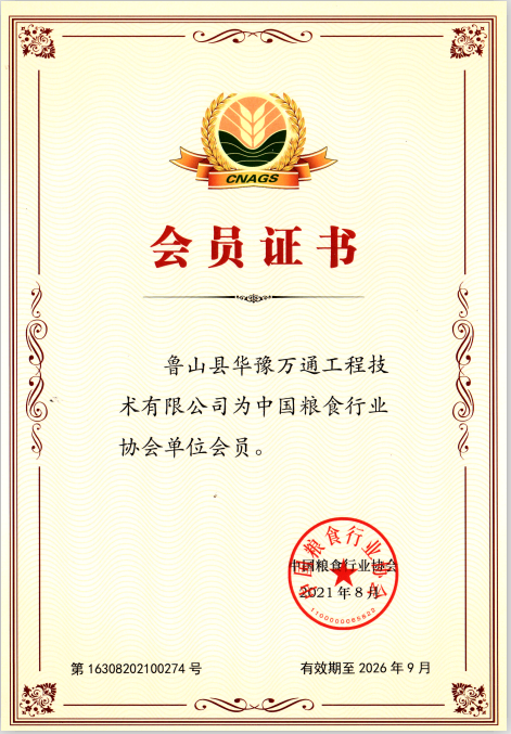 中國(guó)糧食行業(yè)協(xié)會(huì)經(jīng)多方考察和論證,于2021年8月份正式吸納魯山縣華豫萬(wàn)通工程技術(shù)有限公司為會(huì)員單位。