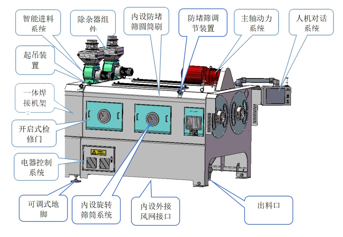 - 篩孔防堵系統(tǒng):可實(shí)現(xiàn)對設(shè)備篩孔不間斷的清理,防止篩孔堵塞。